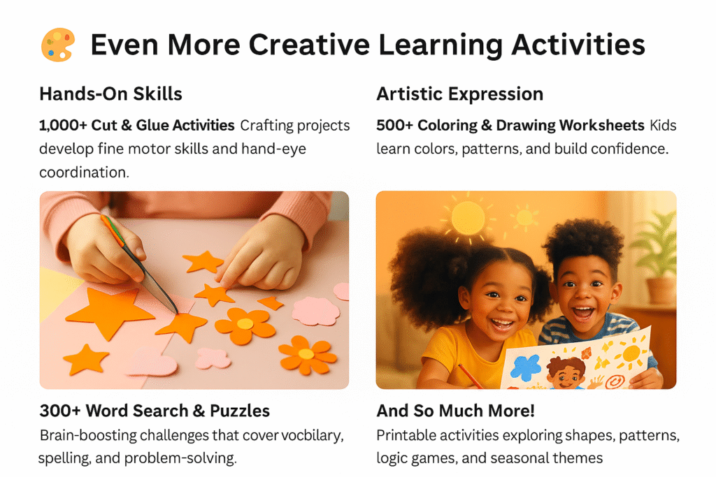 “I’m a working mom, and this bundle has made our learning routine so simple. Coloring, ABC, maths—everything in one place! My kids actually ask for printouts themselves.”